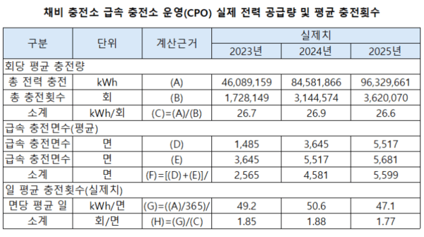 노력은 수치로 증명된다. 지난 2023년 채비가 운영하는 급속충전소의 충전 횟수는 172만8149회로 집계됐다. 그해 급속 충전 면수(기초+기말) 2565면을 고려한 하루 평균 가동률은 4.5%다. 지난해에는 충전 면수가 5599면으로 두 배 이상 늘었는데도 가동률은 4.4%로 안정화된 모습을 보였다.