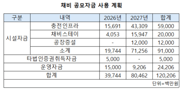 ▲ 채비 공모자금 사용 계획 (자료=증권신고서)