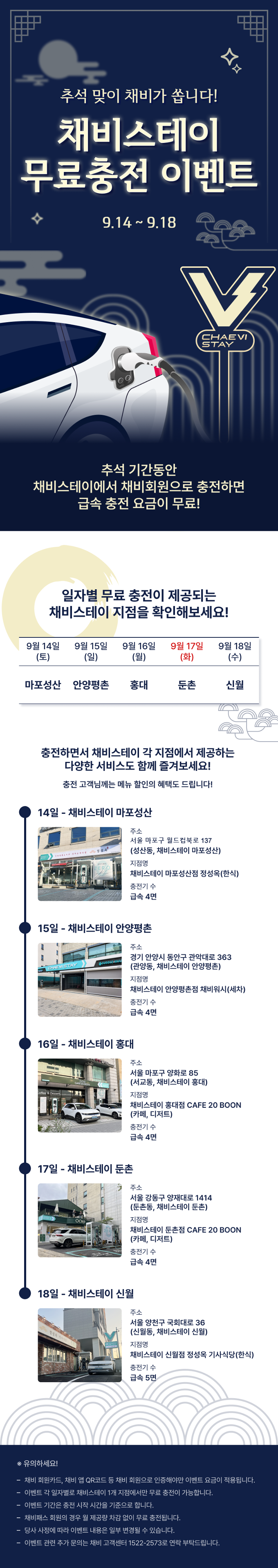 [공지] 신규 오픈 채비 급속 충전소 안내(9.19)
